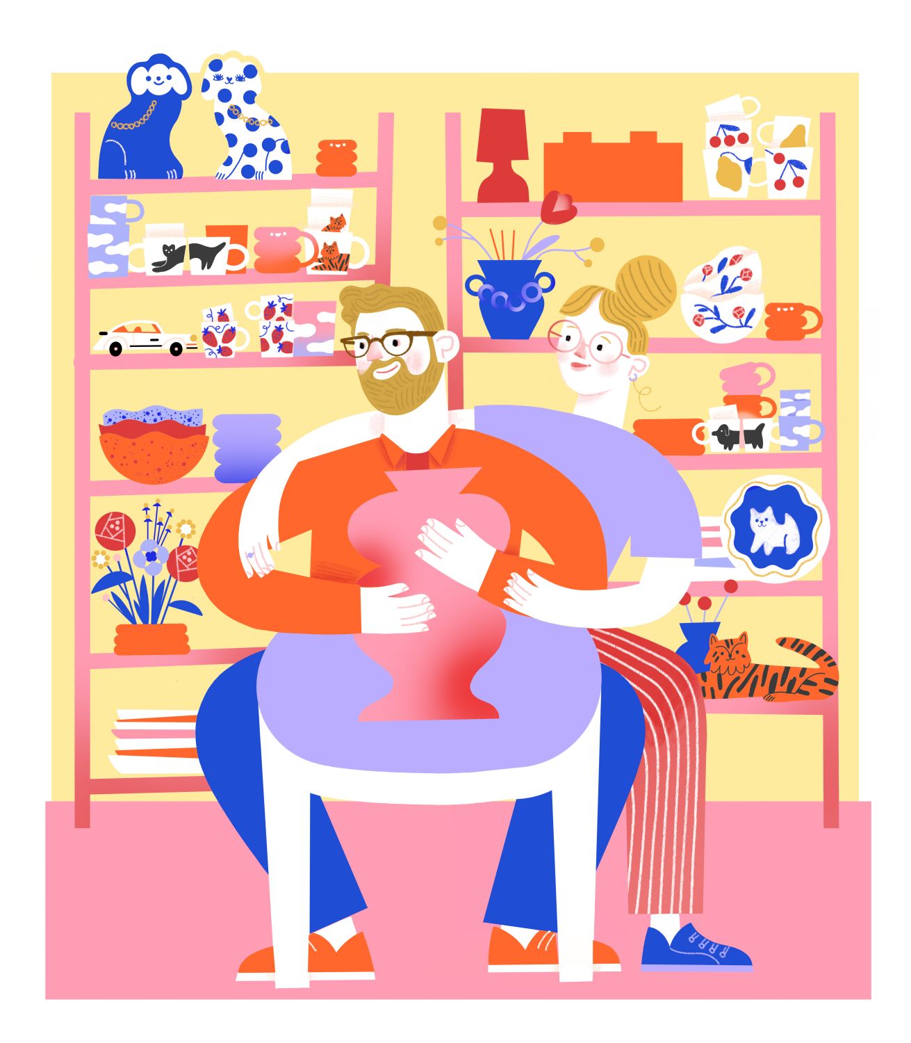 W pracowni zajmuję się produkowaniem ceramiki. Wymyślam nowe wzory, toczę, maluję, szkliwię, wypalam. Prowadzę też trzaskowy Instagram i Tiktok. Na co dzień staram się pokazywać, jak powstają nasze rzeczy, i co w pracowni piszczy. Gotowym przedmiotom robię zdjęcia i przekazuję wszystko dalej Olkowi