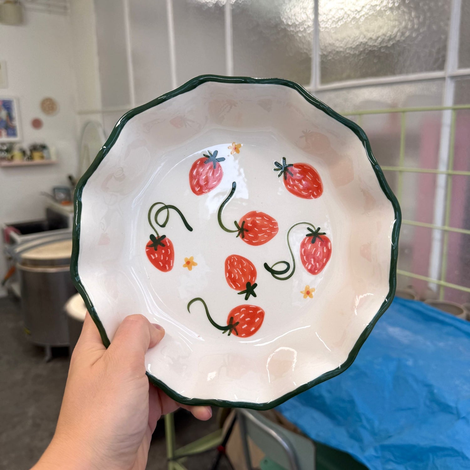 Głęboki talerz kwiatek z truskawkami