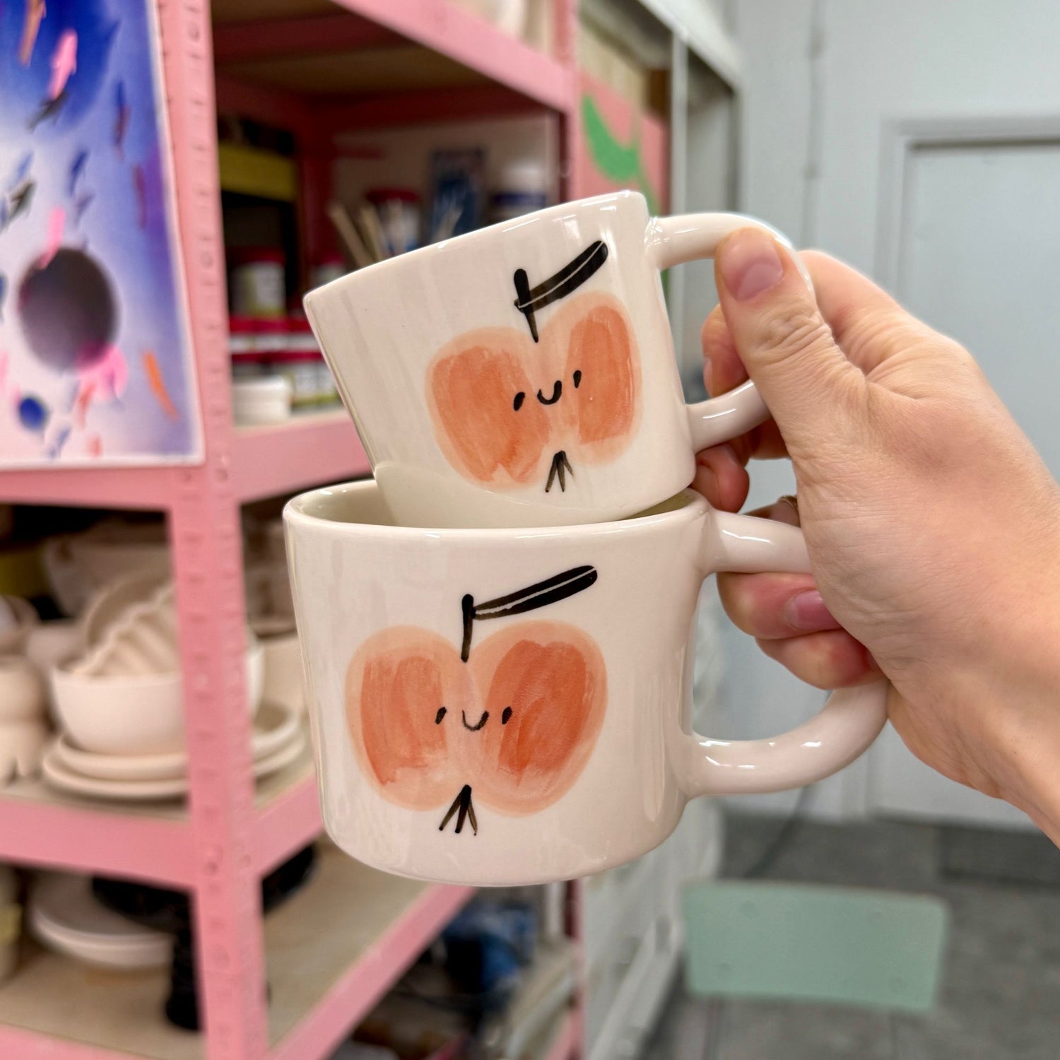 Ręcznie wykonany i malowany kubek z parą owocków.