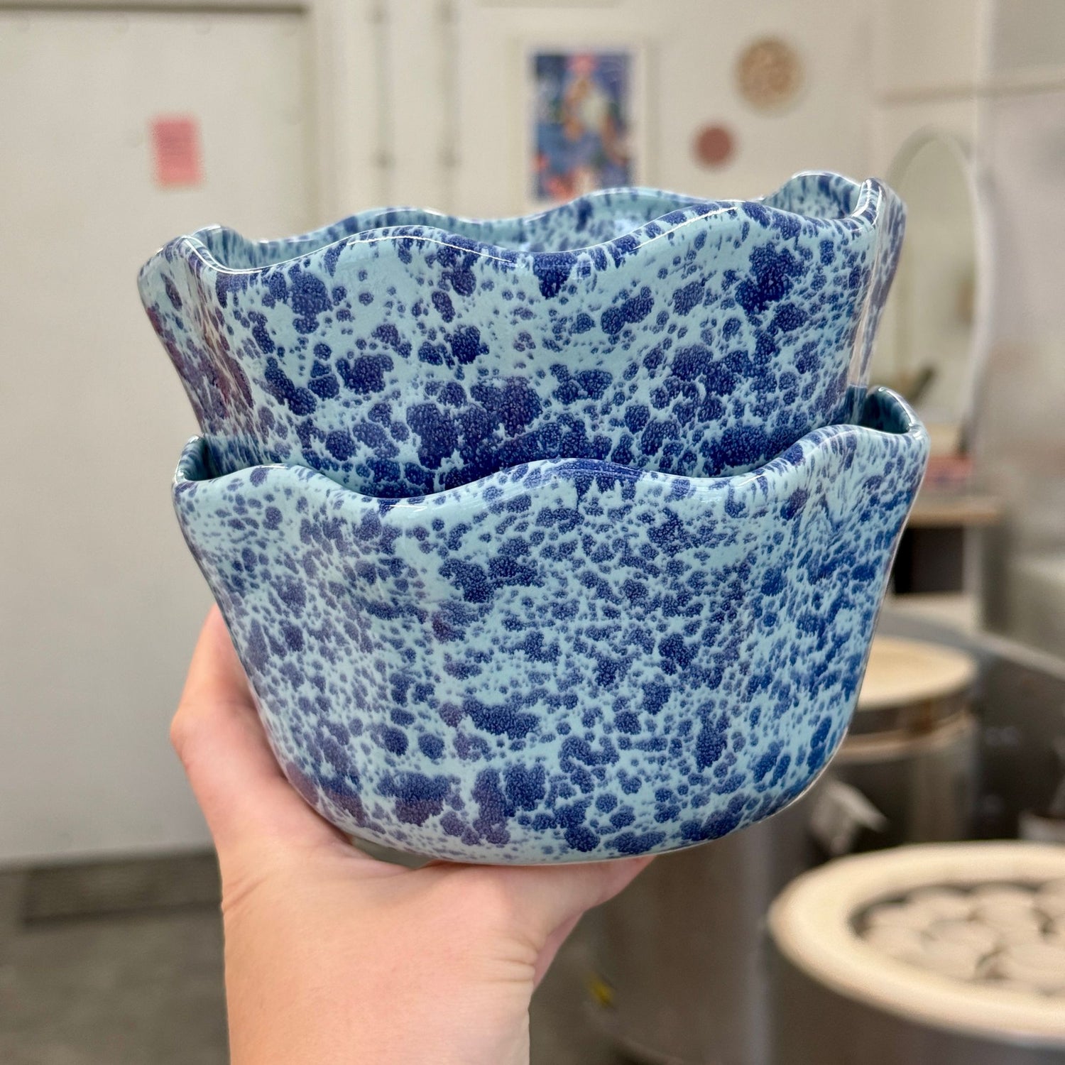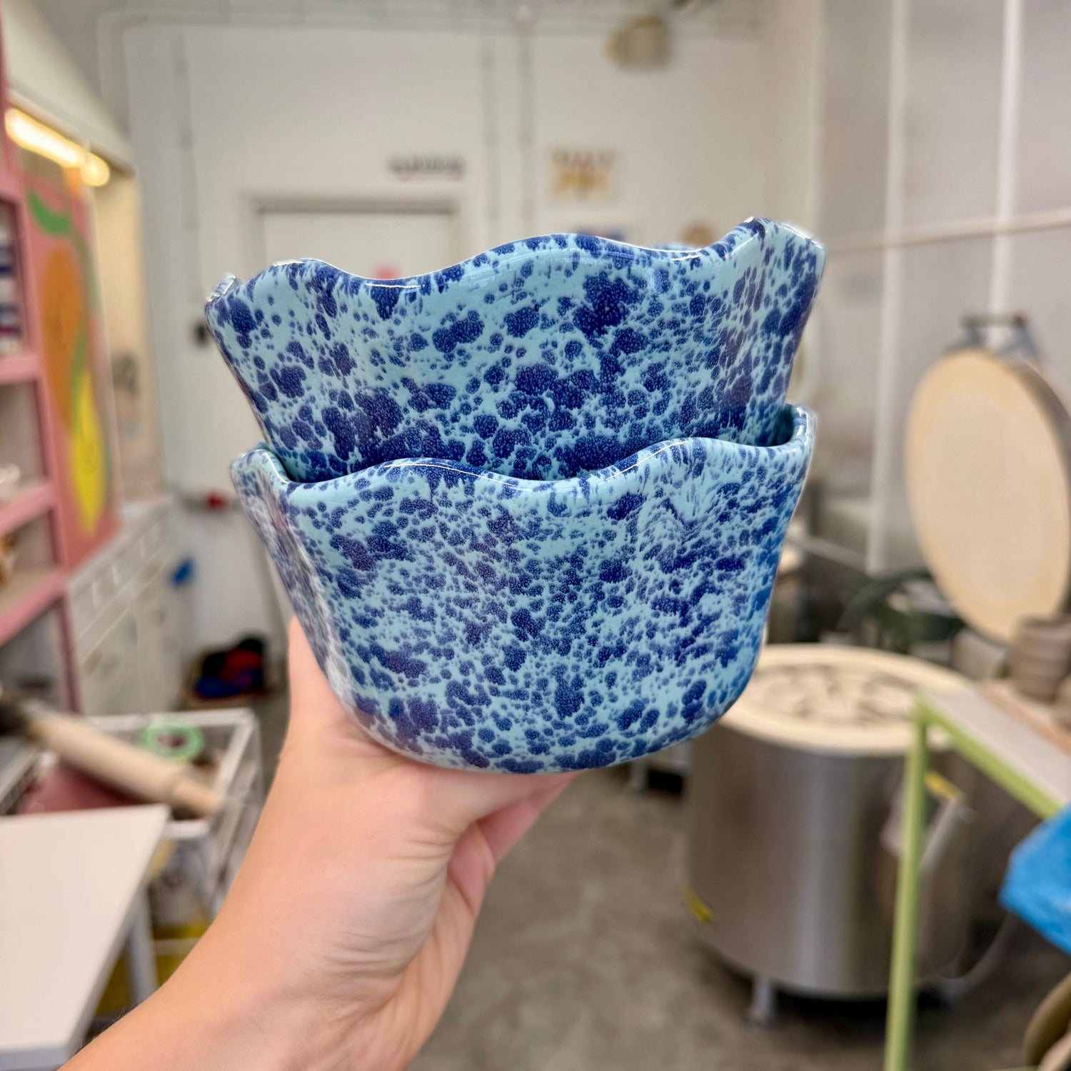 Miska-kwiatek / miętowa w kobaltowe ciapki