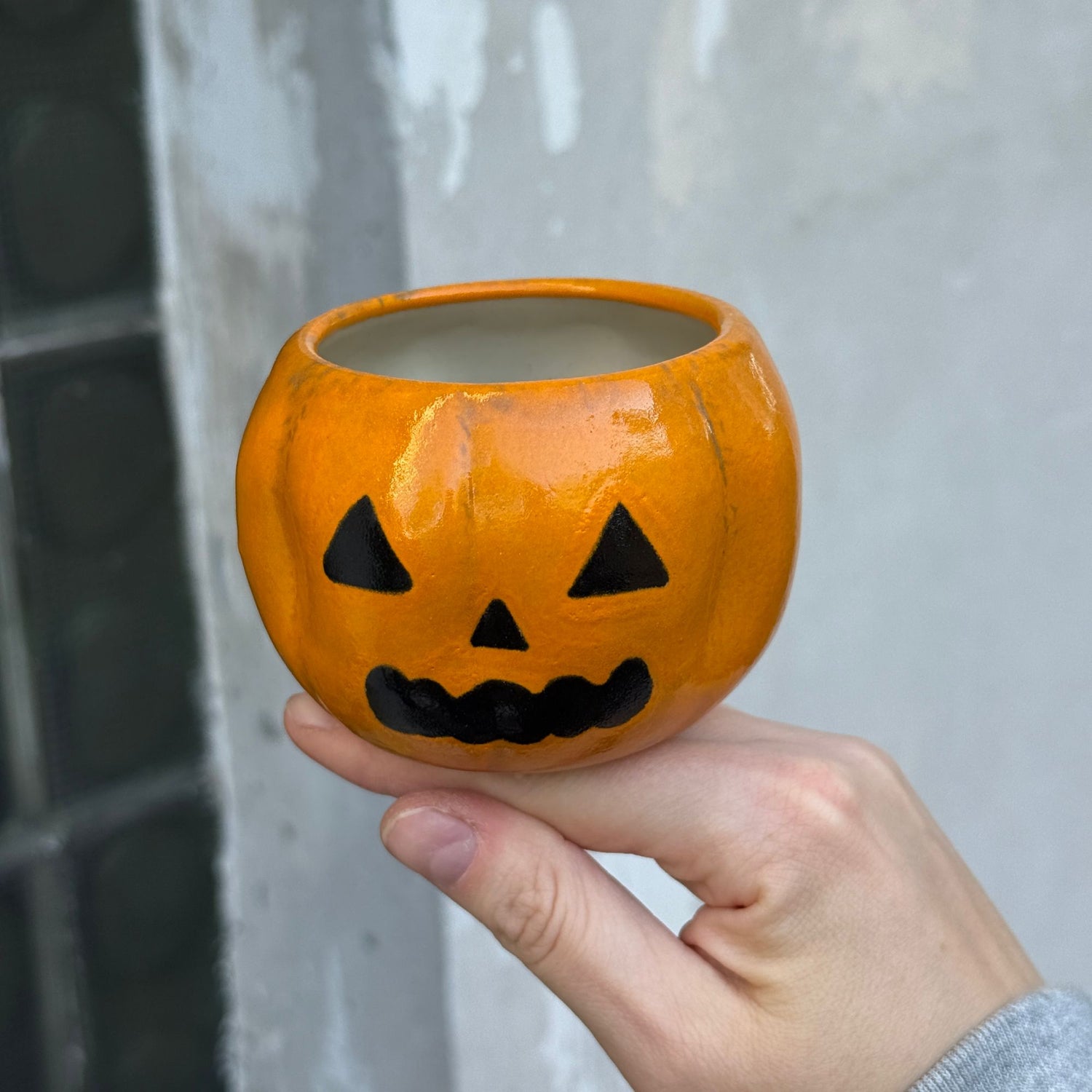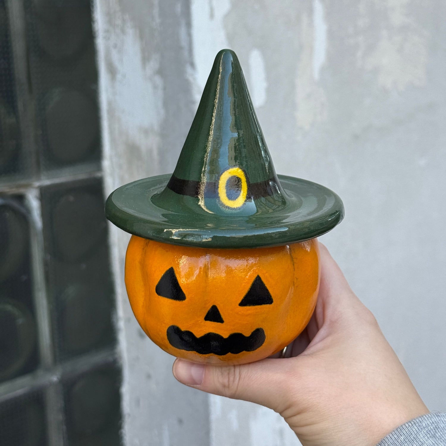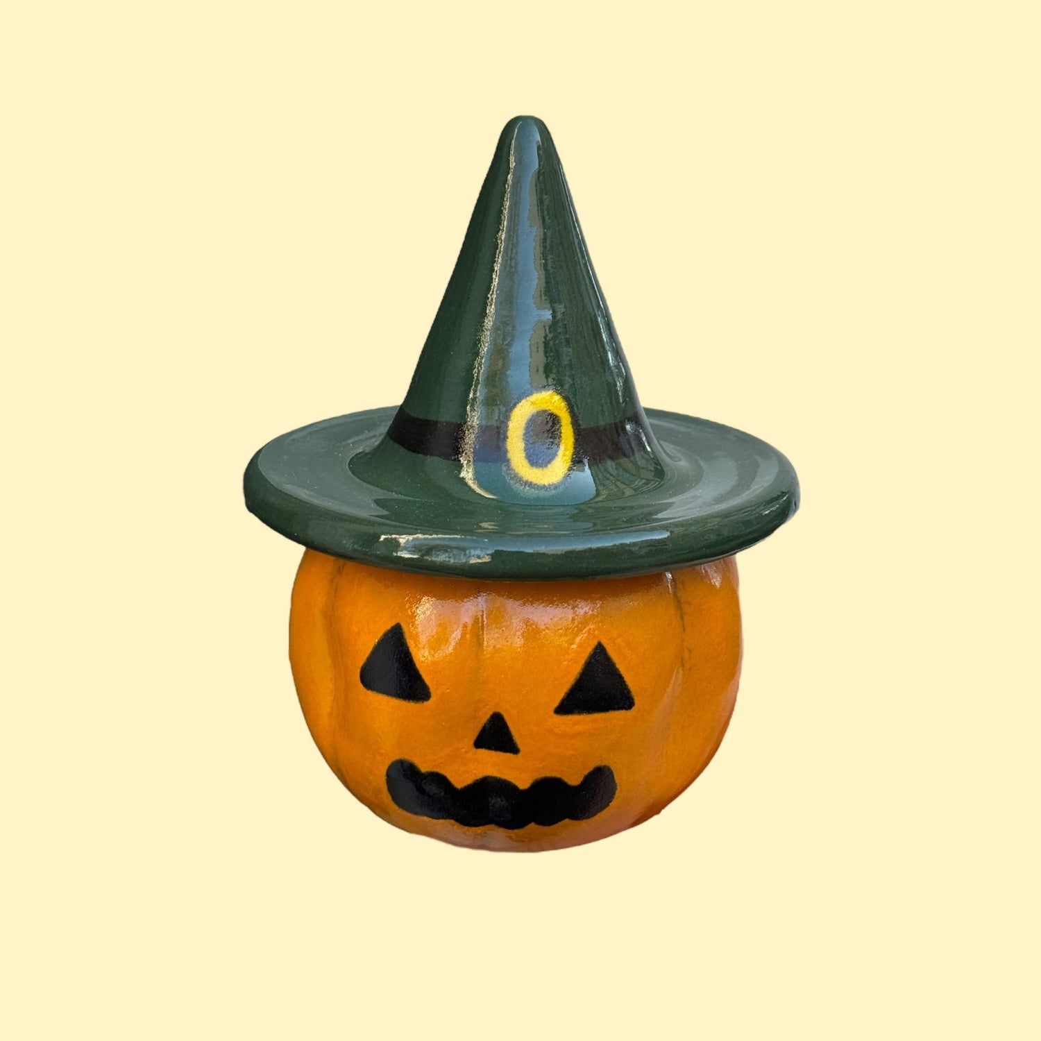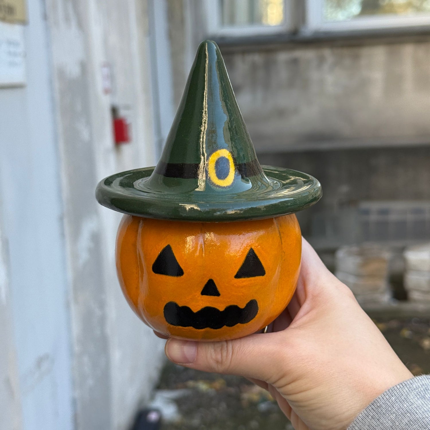 Wytoczone na kole pudełeczko w kształcie halloweenowej dyni :) Może służyć na sól, drobne skarby albo po prostu jako figurka.