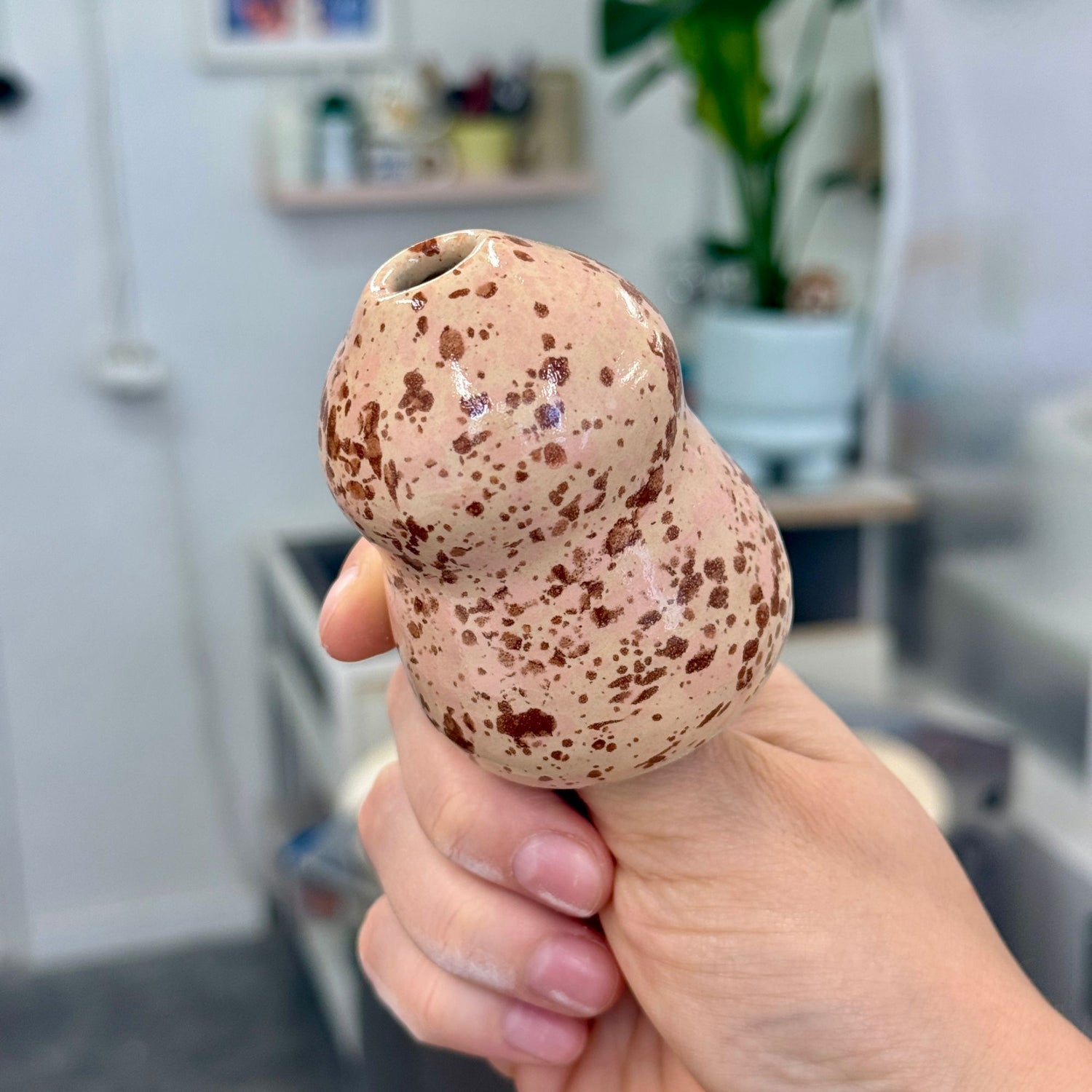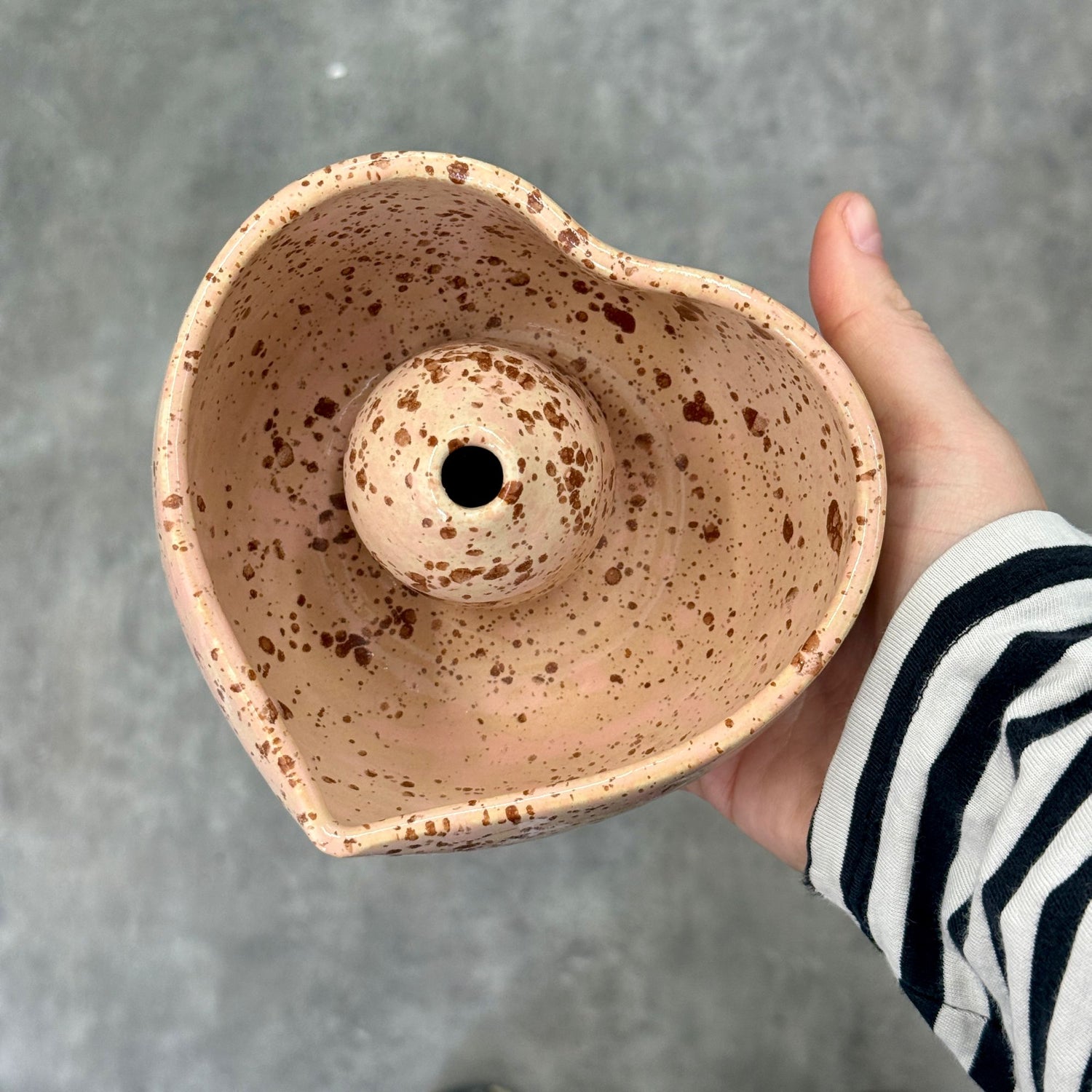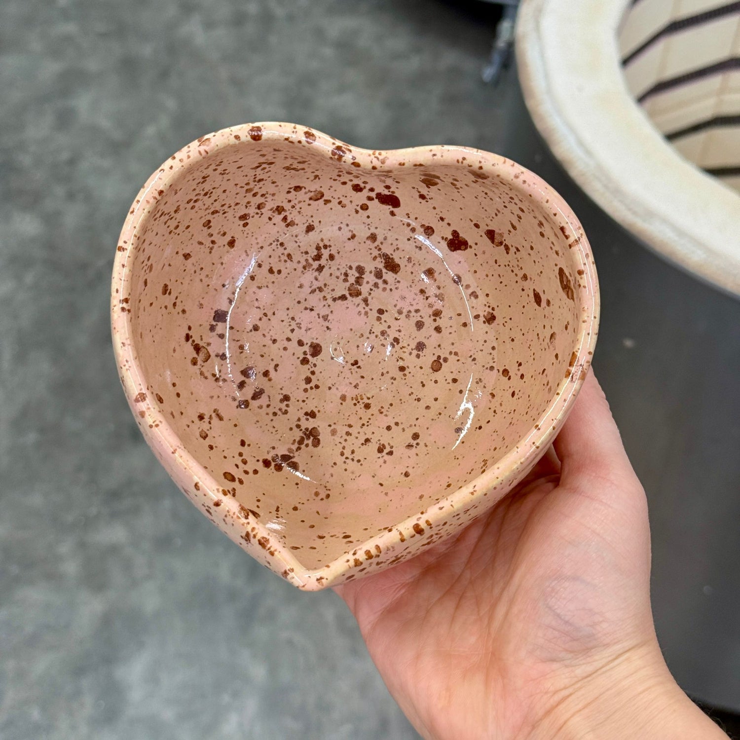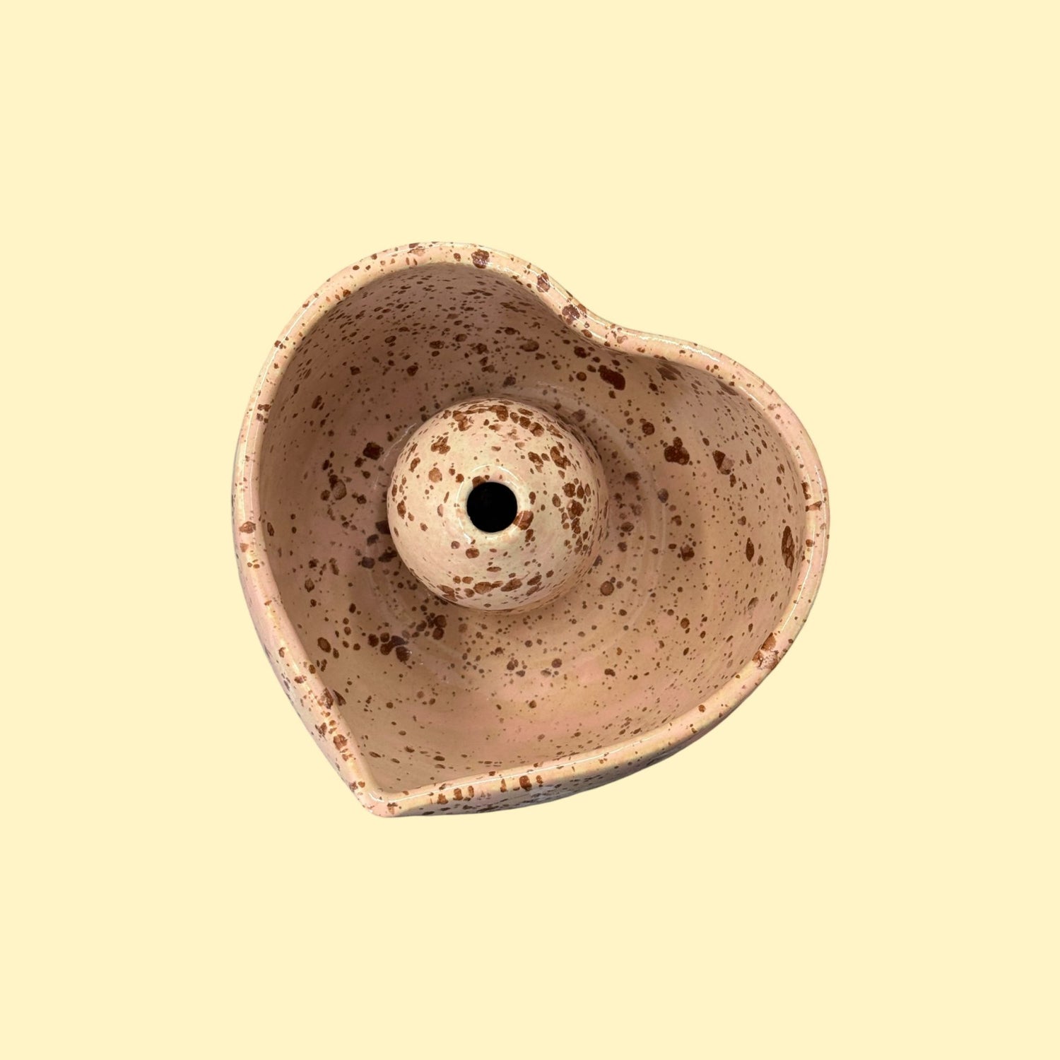 Pokryte błyszczącym jasnym szkliwem z brązowymi plamkami o różnym natężeniu; miska jest uformowana w kształt serca.