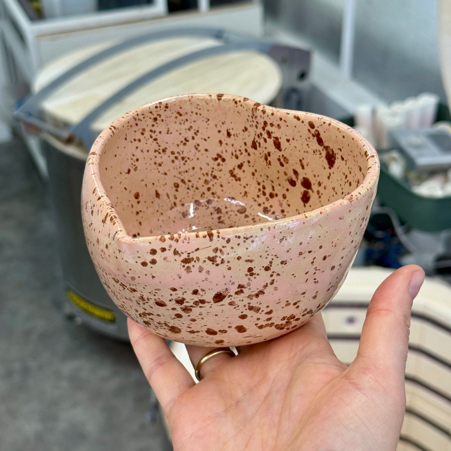 Zestaw do przyrządzania matchy - toczona na kole miseczka z dzióbkiem i trzymadełko na miotełkę